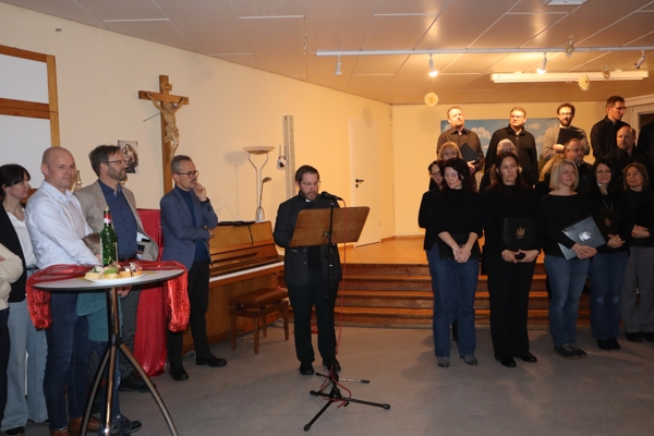 Im Anschluss wechselten die Gäste in den festlich vorbereiteten Pfarrsaal, wo der offizielle Empfang stattfand. Thomas Hammerer, stellvertretender Vorsitzender des Pfarrgemeinderats, eröffnete den Abend und hieß die Besucherinnen und Besucher herzlich willkommen.